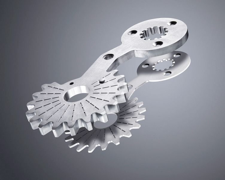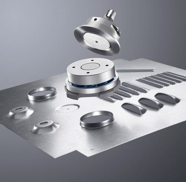 Durch die Kombination der beiden Technologien Lasern und Stanzen werden komplexe Bearbeitungsaufgaben effektiv und produktiv erledigt. Standardkonturen und Umformungen bringt der Stanzkopf ein, komplexe Konturen werden mit dem Laser geschnitten.
